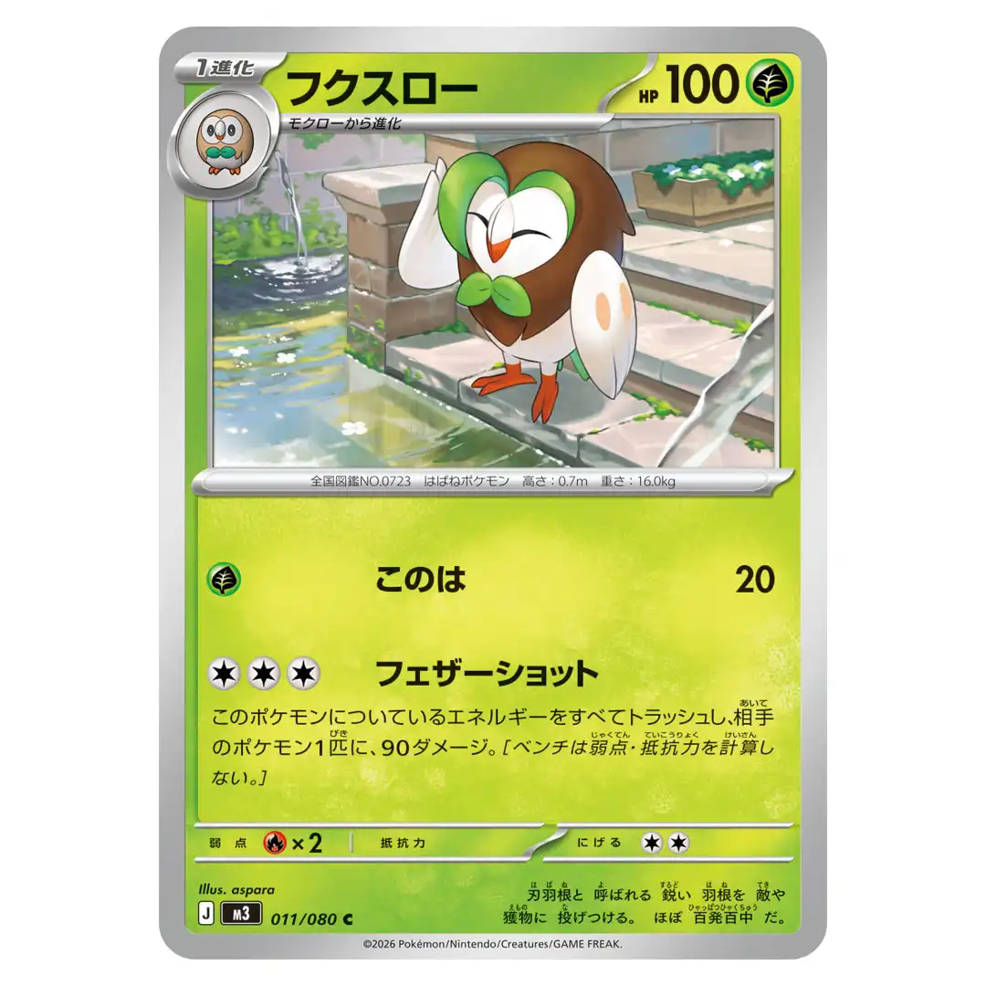 Authentic Japanese Pokemon card: Dartrix C 011/080 M3 Nihil Zero Pokemon Card Japanese.